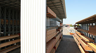 Para ofrecer a sus clientes una mejor visión de conjunto y un acceso más rápido a los artículos de madera, BAUKING decidió almacenar de forma centralizada todos los artículos de madera en la nueva nave autoportante. Una nave autoportante de este tipo, en la que las estanterías actúan como estructura de carga para el techo y las paredes, es mucho más flexible y rentable que un almacén clásico. BAUKING ha proyectado una nave formada por tres lineales de estanterías cantiléver de unos 20 metros de longitud cada una. Las estanterías cantiléver, de más de 7,8 metros de altura, cuentan con siete niveles de almacenamiento.