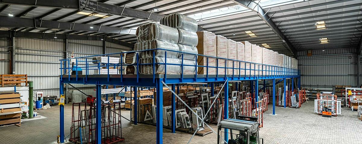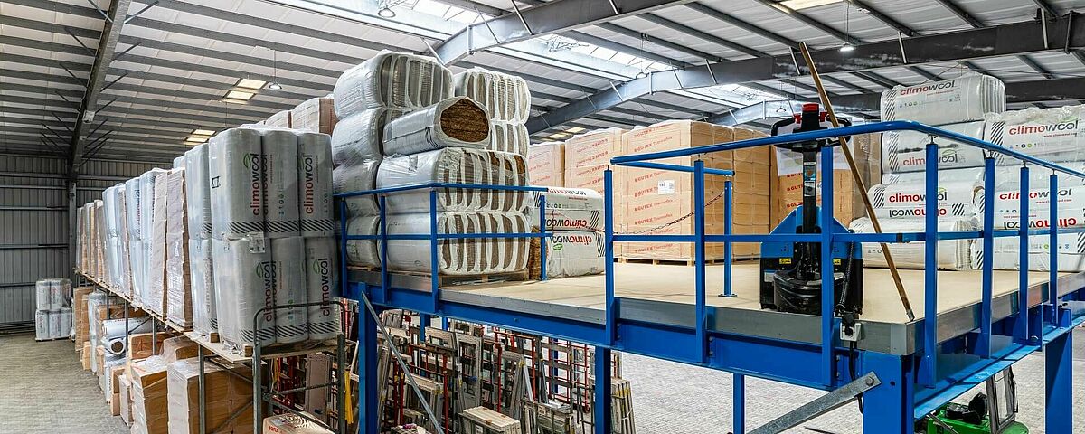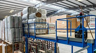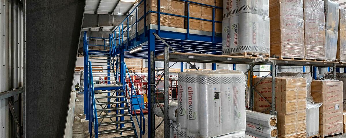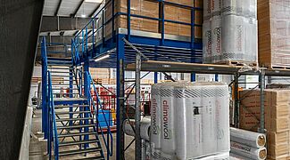 FRIES decidió construir un segundo nivel en la nave existente, ampliando así considerablemente la capacidad de almacenamiento del material aislante y mejorando las condiciones de almacenamiento. Una plataforma de almacenamiento o entreplanta constituye una opción económica. La versatilidad de esta estructura de acero independiente permite adaptarla fácilmente a las necesidades individuales de cada lugar. Como FRIES ha equipado casi todo su almacén con estanterías de OHRA y está convencido de la robustez de sus sistemas, el especialista en sistemas de estanterías para cargas pesadas de Kerpen, Alemania, también recibió el encargo de instalar la entreplanta.