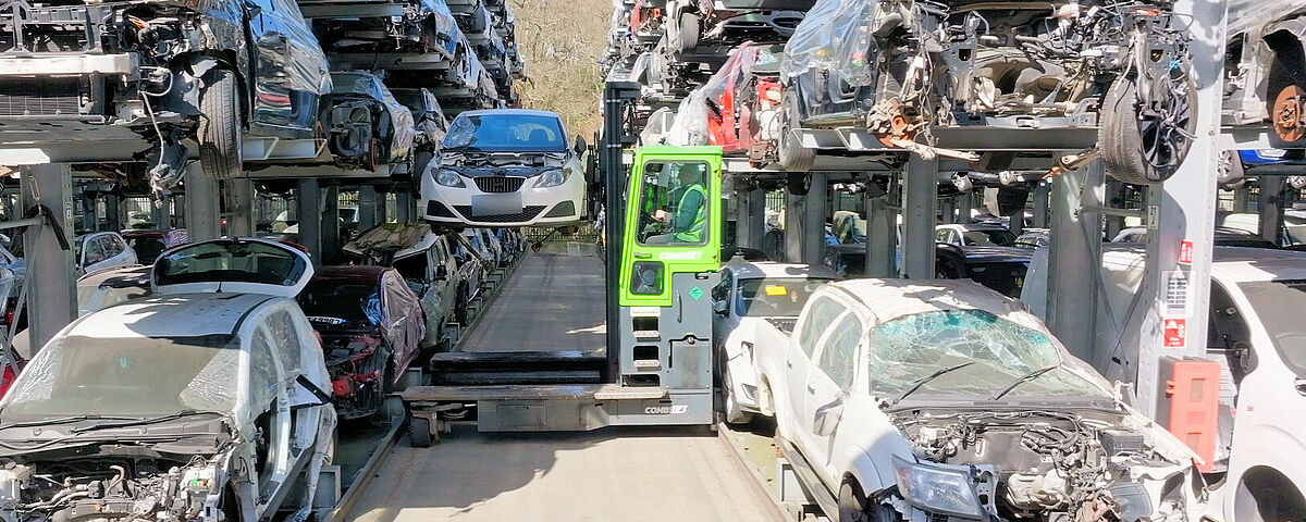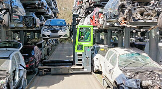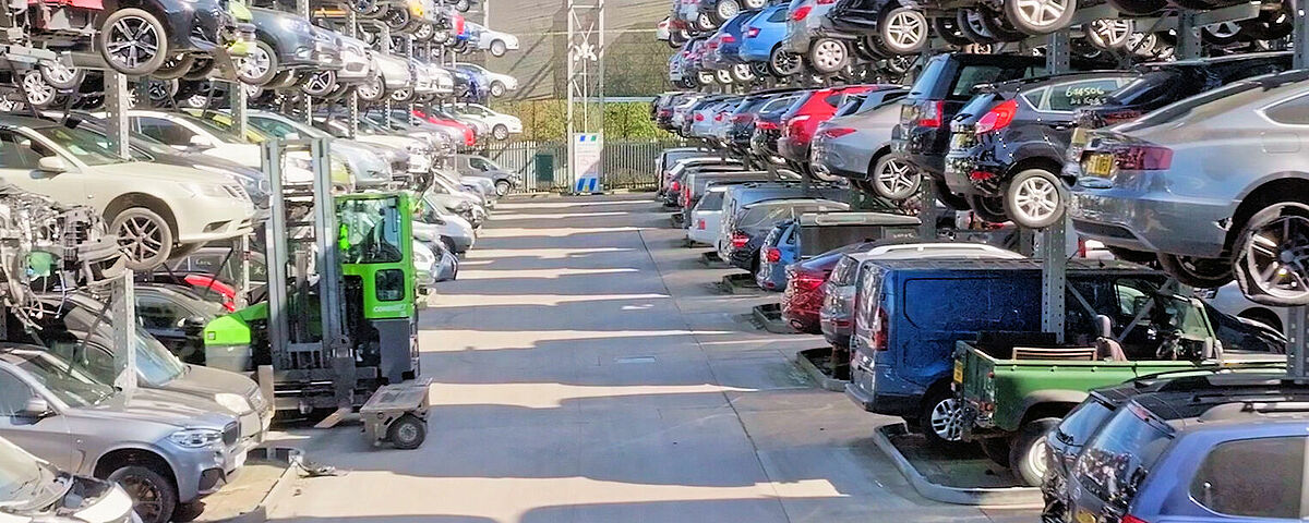 Con el fin de tener siempre a su alcance el mayor número posible de vehículos fuera de uso, Silverlake Automotive Recycling, con sede en Hampshire, Reino Unido, almacena turismos, SUV y furgonetas en estanterías cantiléver de OHRA. Gracias a las estanterías de más de 8 metros de altura, se pueden «apilar» de forma segura cinco vehículos en altura de hasta 2 toneladas cada uno. Los lineales de estanterías están equipadas además con guías, de modo que los vehículos fuera de uso pueden introducirse y retirarse con una carretilla elevadora de carga lateral. De este modo, los pasillos entre las estanterías son especialmente estrechos y se pueden colocar más estanterías en una superficie mínima. Silverlake puede almacenar alrededor de 2500 vehículos usados en sus instalaciones.