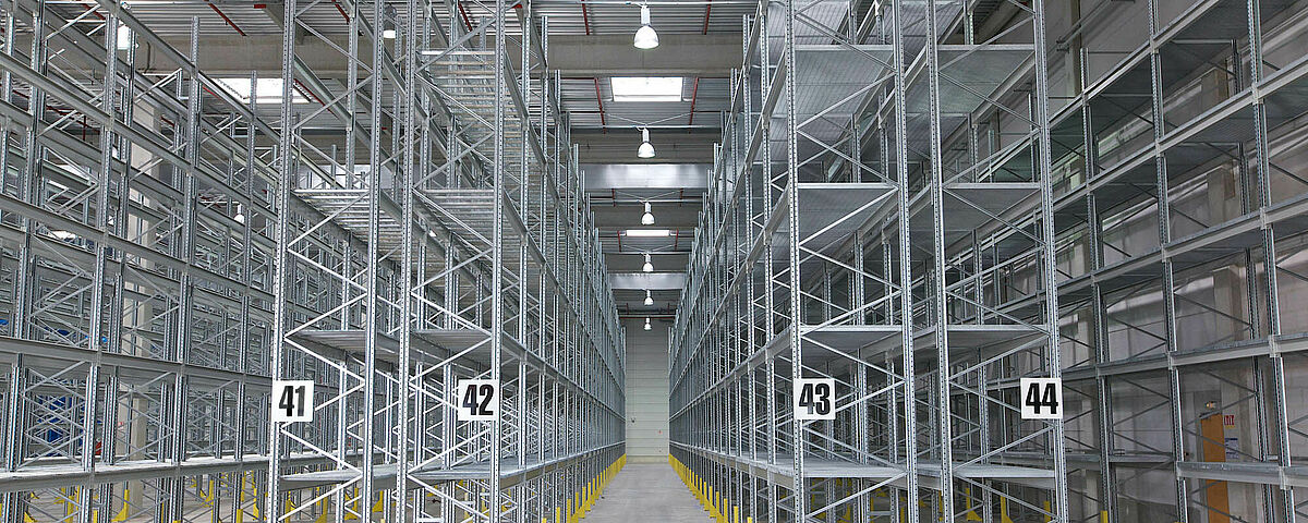 Para cargas livianas y de peso mediano (hasta 3.000 kg de carga por compartimento) se pueden usar estanterías de paletización OHRA P5, más económicas. También en las ubicaciones con pasillos guiados por railes para la circulación de carretillas, los requisitos para los estantes robustos son menores. Nuestros bastidores de estanterías de chapa de acero optimizada y nuestros largueros cumplen con los requerimientos estáticos de una estantería para paletas versátil y segura.